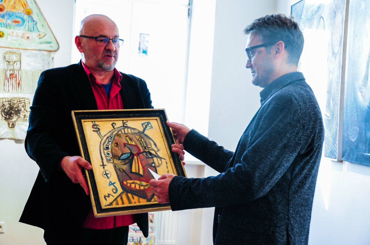 Pracuje z pędzlem, ołówkiem, kredką, tuszem i tworzywem niebanalnym, z którego wyczarowuje prawdziwe arcydzieła. Prace profesora zachwycają, przykuwają, hipnotyzują, rozbudzają refleksyjność…tym bardziej zapraszamy do wspomnień związanych z tą wspaniałą wystawą!