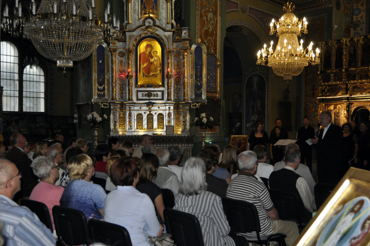 W jarosławskiej cerkwi, zgromadzona publiczność