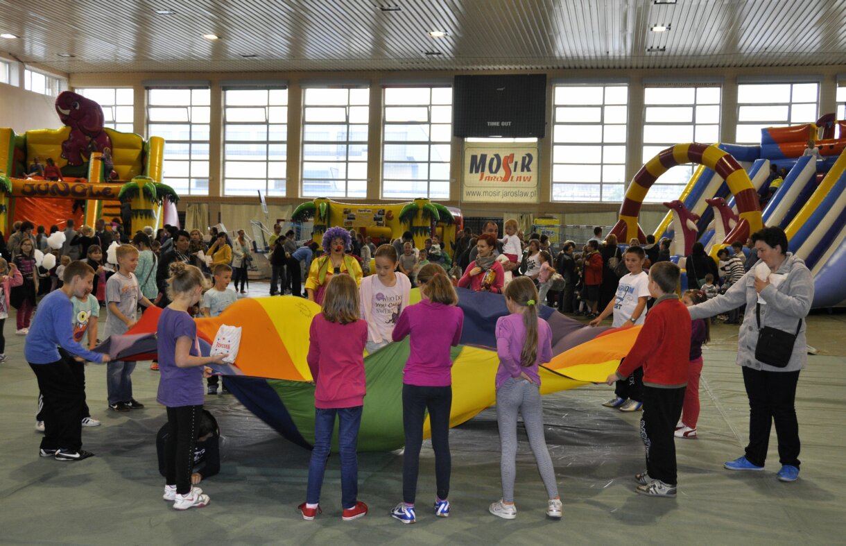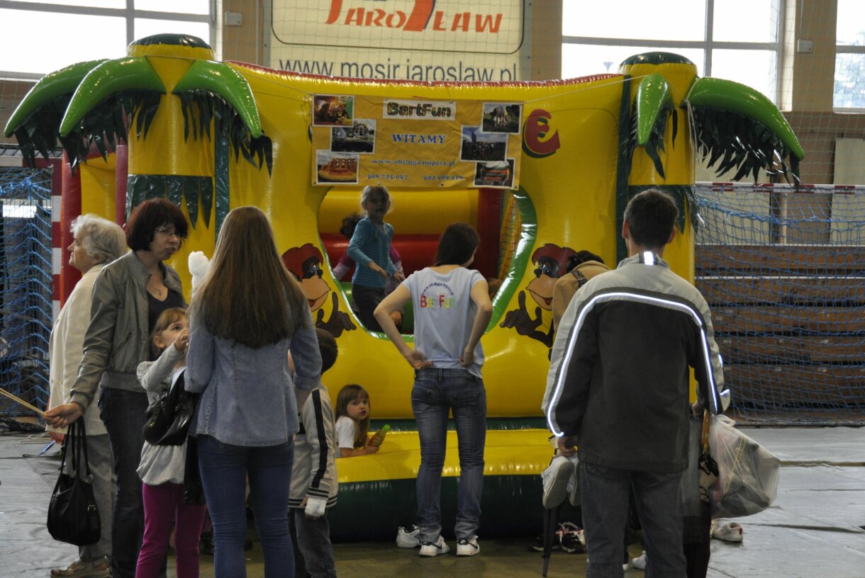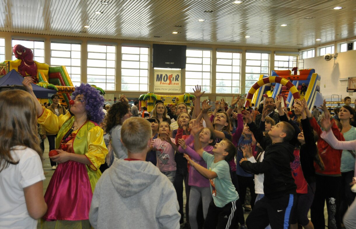 Dart i brama celnościowa, tańce, nauka chodzenia na szczudłach, puszczanie baniek mydlanych oraz łakocie dla dzieci, to tylko niektóre z atrakcji przygotowanych dla najmłodszych z okazji Międzynarodowego Dnia Dziecka, atrakcji, które poczatkowo miły mieć miejsce na płycie jarosławskiego Rynku, jednak z powodu deszczu zostały przeniesione na teren Hali Sportowej Miejskiego Ośrodka Sportu i Rekreacji. Nie ma tego złego… pod dachem najmłodsi oraz ich rodzice mogli korzystać ile dusza zapragnie, z przygotowanej specjalnie dla nich, rozrywki.