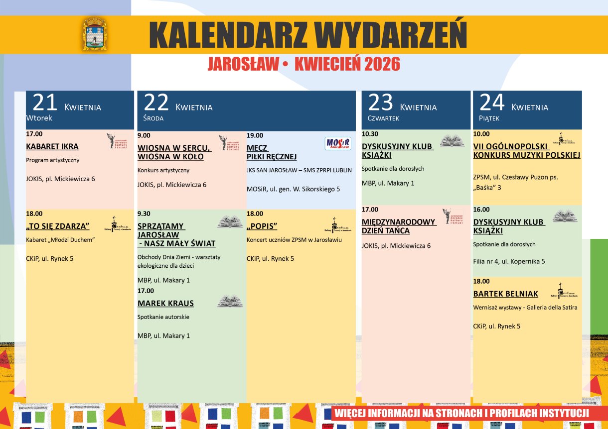 Kwiecień wkracza do Jarosławia z energią i pomysłami, które trudno będzie przegapić. Miasto ponownie ożyje bogatą ofertą wydarzeń i inspirujących inicjatyw. „Co ciekawego w Jarosławiu… w kwietniu 2026?”