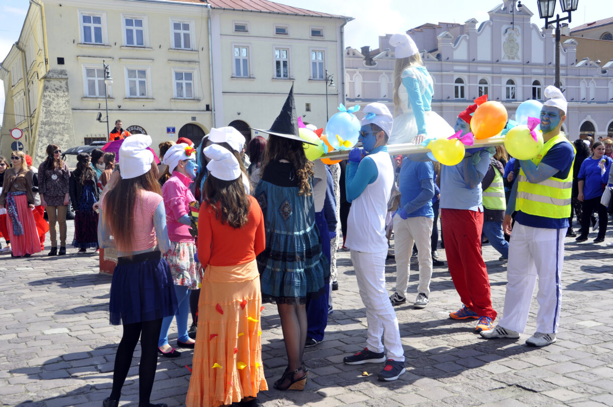 Rynek, aby odebrać klucz. Wśród bajecznych postaci można było dostrzec, m.in. Smerfy,