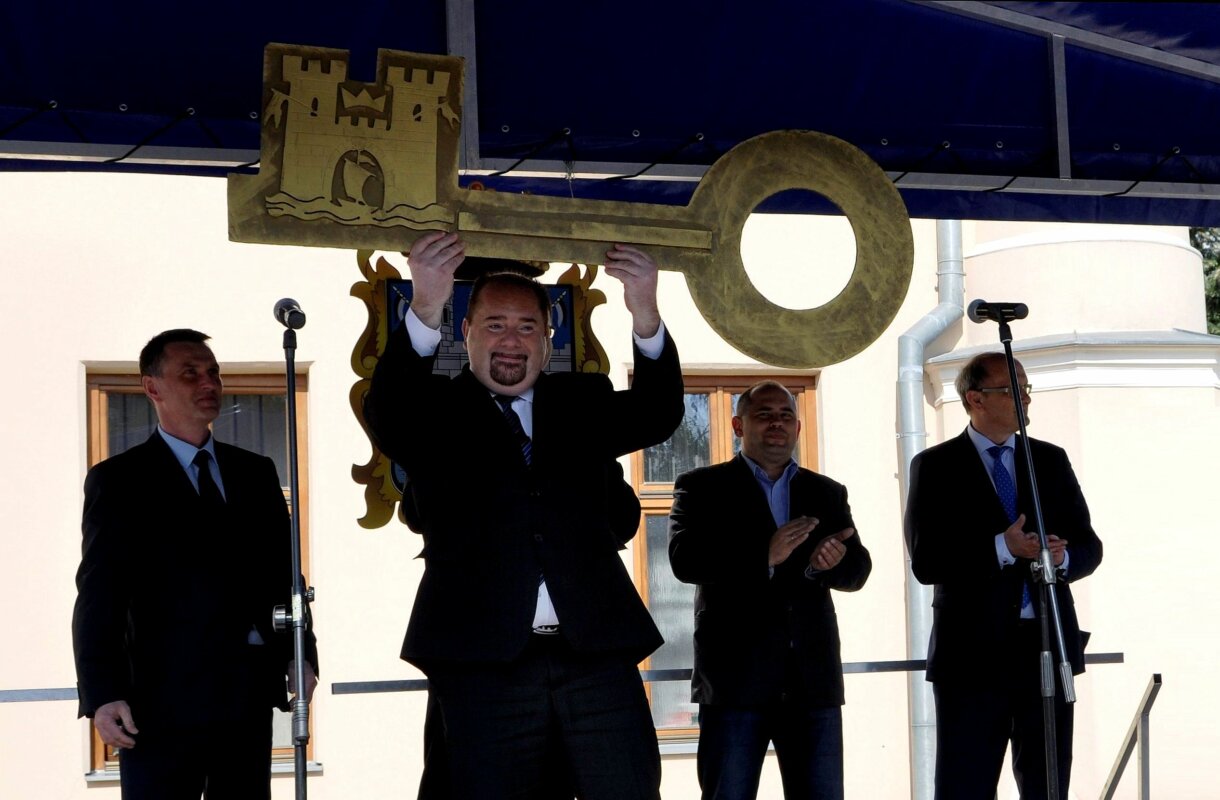 samorządu studenckiego, odebrali z rąk burmistrza Waldemara Palucha symboliczny